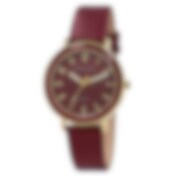 Excellanc Damklocka med konstläderrem / Armbandsklocka / Armbandsur – Vinröd/guld