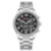 Vattentät armbandsklocka - Silvrigt armband med svart bakgrund och silvrig ram