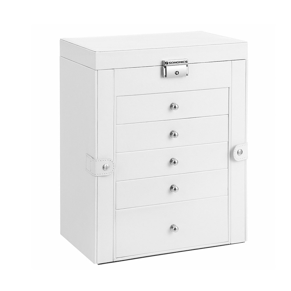 Smyckesställ 360° roterande med lådor och krokar – Vit