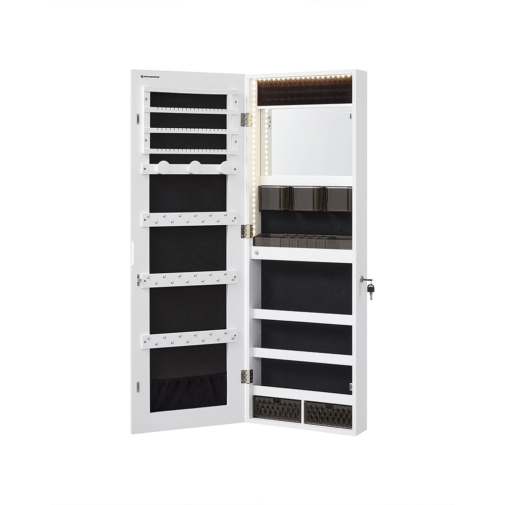 Vägghängt Smycksesskåp med spegel och LED-belysning - Vit