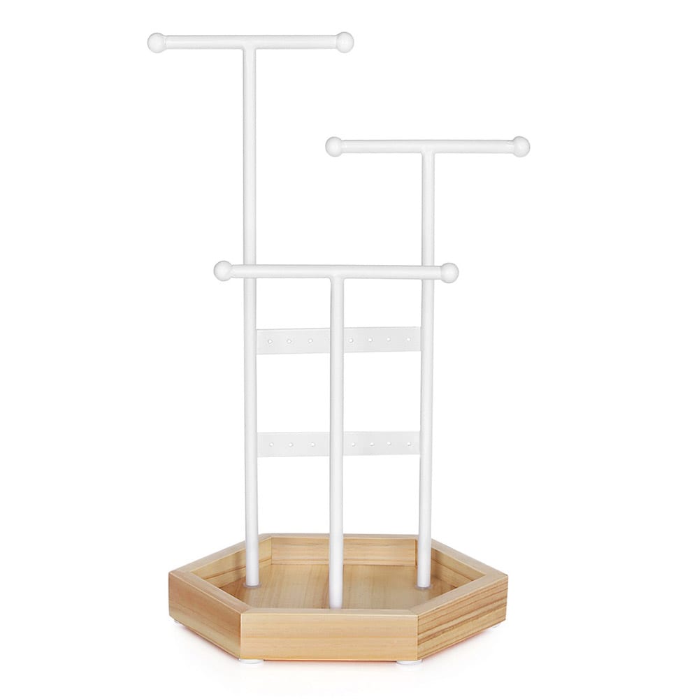 Smyckesställ metall med sexkantig träbas och flera nivåer - Vit/Trä