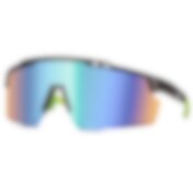 Sportiga solglasögon med blått spegelglas och svart båge