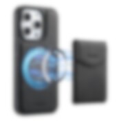 Konstläderskal med magnetisk korthållare till iPhone 15 Pro Max med avtagbart fäste - Svart