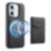 Konstläderskal med magnetisk korthållare till iPhone 16 med avtagbart fäste - Svart