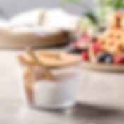 Skål med 2 fack och bambuskedar – perfekt för olika socker